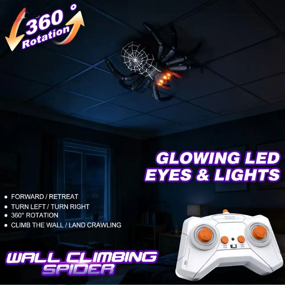 Captivating Play Experience: Designed for imaginative fun, this wall-climbing spider offers unique interactions. Its vibrant appearance and versatile movement across both vertical and horizontal planes provide endless entertainment, making it an engaging addition to any collection of remote-controlled gadgets.